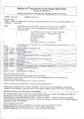 Please direct any questions on the day to Neil Martin, Vivace Chorus Concert Manager or Jane