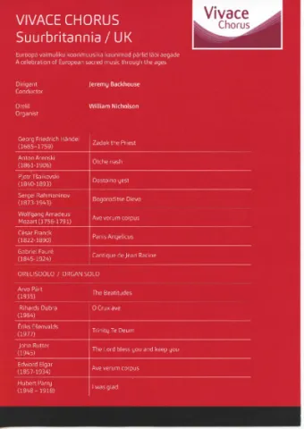 meisterlikkust ndudvates kontsertprogrammides, mille hulka kuuluvad Howells'i ,Hymnus Paradisi®, Szymanowski ,Stabat