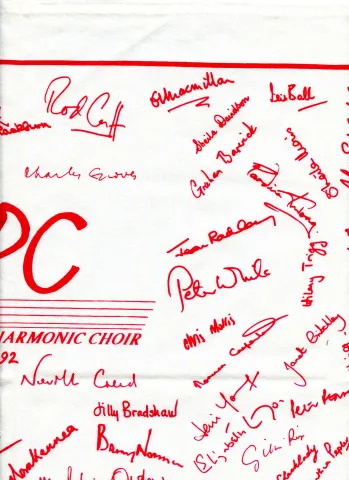 Tea-towel with choir members' signatures