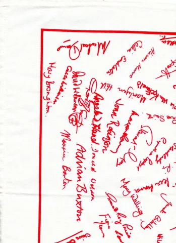 Tea-towel with choir members' signatures