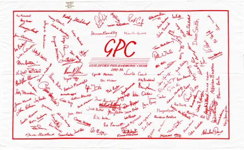 Tea-towel with choir members' signatures (1991-1992)