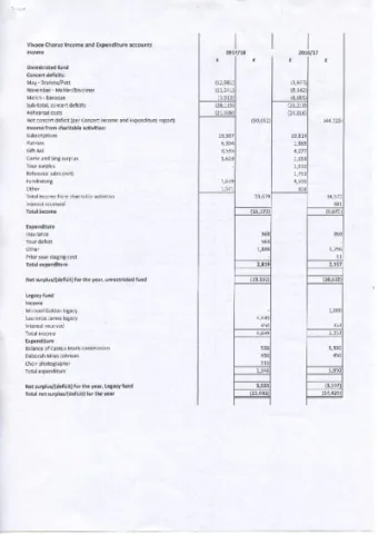 Vivace Chorus Income and Expenditure accounts
