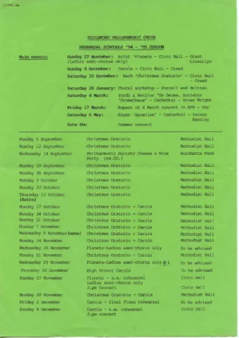 REHEARSAL SCHEDULE '94 — '95 SEASON